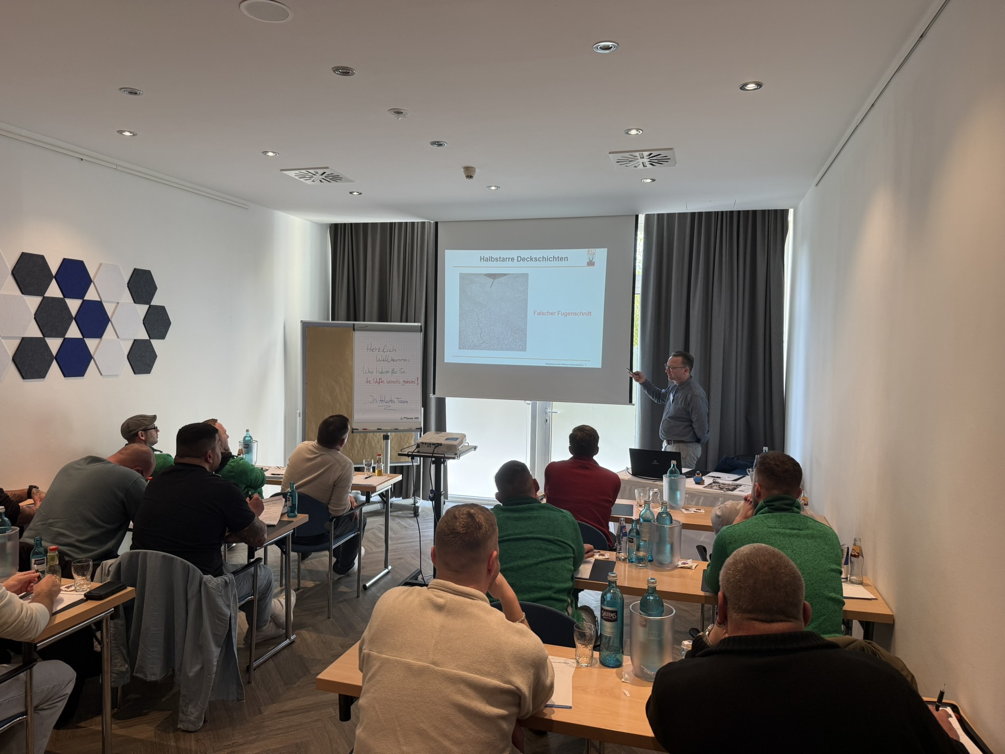 Auch beschäftigte man sich, im Rahmen eines Vortrags zur EBV sowie den Untersuchungsergebnissen des Güteausschusses, mit dem Thema Entsorgung von Halbstarren Deckschichten.